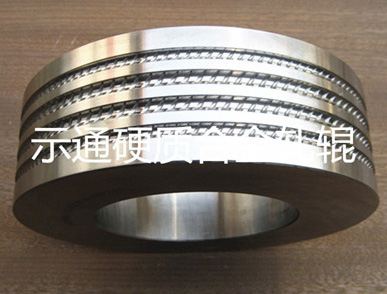 任丘市示通硬质合金有限公司专业生产冷轧、热轧带肋钢筋用硬质合金轧辊[碳化钨轧辊]及总成配件、高线轧辊、扁丝轧辊、无缝钢管轧辊、焊丝轧辊及各种异型材硬质合金轧辊。自成立之初,就把制造高质量的产品作为公司的发展之本,从原材料的复检到制造工序的控制,以及产品成型后的各项检测,都严格按照工艺技术要求和质量保证手册认真执行,确保为客户提供好的产品。 生产冷轧带肋钢筋用硬质合金轧辊,三面肋轧辊、两面肋对辊、弧辊、扶正轮,按用户要求设计单槽、双槽、三槽、四槽合金对辊。生产∮4~∮12各种规格的硬质合金轧辊,采用GB13788--2008生产,以好的合金材料和制作工艺,轧出产品具有高光洁度,适中的价格,为用户带来更大的经济效益.....【了解详情】